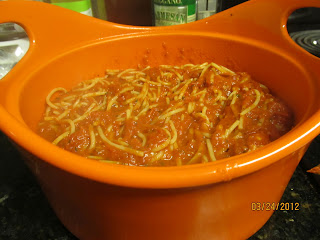 6. While that is simmering, cook the spaghetti in a separate pot of boiling water for 5 minutes and drain, then return to the pot