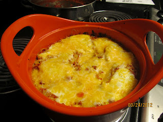 - Pour into a 3-quart casserole dish and top with remaining mozzarella