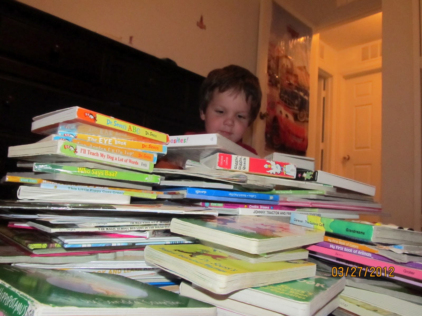 Do you see a theme here? My son loves CARS and animals and my daughter loves funny books and books about animals. We all love Sandra Boynton books and, of course, Dr. Seuss books.